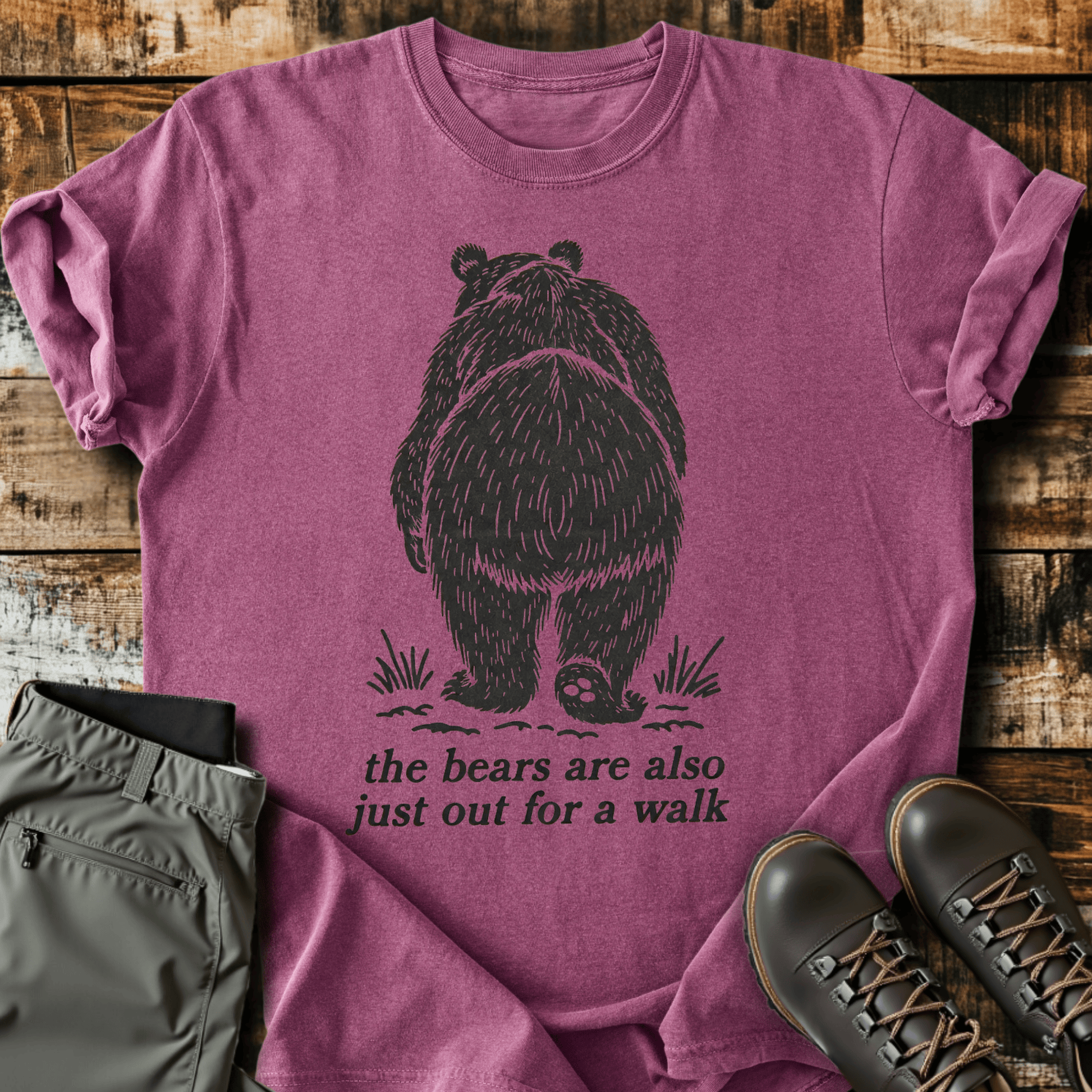 Made from 100% ring-spun Comfort Colors cotton because if you're gonna move at sloth speed, you might as well be comfortable doing it. This unisex shirt has that lived-in, "I've been hiking for years" feel right out of the package (we won't tell). Heavier, quality material that runs true to size - because nothing says "outdoor enthusiast" like a shirt that actually holds up. Made, packaged, and shipped in the USA by people who probably also take snack breaks every mile.