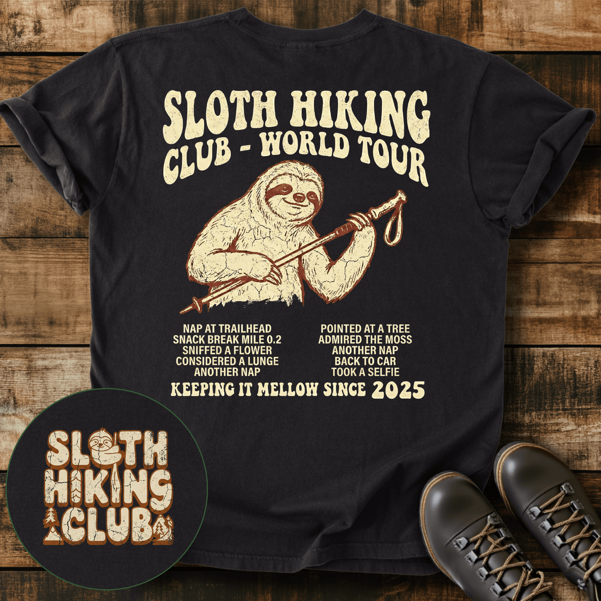 Whether you're summiting mountains or strolling scenic trails, our tees are designed for adventurers who value quality and style. Join the Sloth Hiking Club and enjoy premium hiking gear that feels as good as it looks.